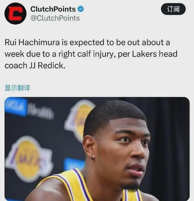 继里夫斯(左腓肠肌二级拉伤)之后,湖人又一首发球员倒下......