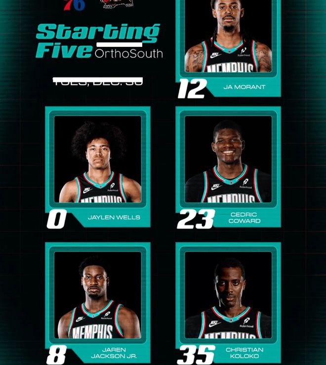 首发阵容方面,灰熊队这边,扎克-伊迪和小皮蓬缺阵, 教练排出的最新首发五人组为:杰伦-韦尔斯、贾伦-杰克逊、克里斯蒂安-科洛科、塞德里克-考沃德、贾-莫兰特;湖人队这边,八村垒(右侧腹股沟酸痛艾顿)、里夫斯(左小腿拉伤)和文森特(下背部酸痛)继续缺阵,首发阵容则为:卢克-东契奇、杰克-拉拉维亚、马库斯-斯马特、勒布朗-詹姆斯、德安德烈-艾顿。