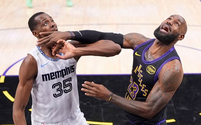 次节回来,海斯裆部被考沃德意外撞到痛苦倒地,雷迪克赶忙为其喊下暂停。下回合同样的位置又被莫兰特肘击,裁判却判罚海斯犯规,这真是‘赔了夫人又折兵’。拉拉维亚连中两球独得全队最高的15分,湖人重新领先到15分。兰代尔转身勾手命中,莫兰特突破上篮命中止血,兰代尔和波普接连命中三分,灰熊打出一波18-0反超3分,湖人过去4分钟一分未得。詹姆斯无奈提前登场,翻身中投+反击飞扣连得6分,带队重新获得领先优势。东契奇强突造成犯规,两罚全中后,半场战罢,湖人66-60领先灰熊6分。