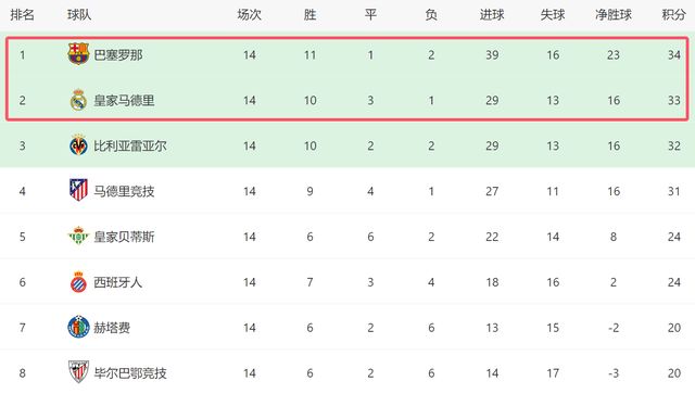 本场过后,皇马在客场遭遇3连平,他们也没能反超巴萨,只能屈居第二。截至目前,在西甲积分榜上,皇马落后巴萨1分。在第11轮结束之后,皇马还一度领先巴萨5分,在积分榜遥遥领先,没想的是,最近3个客场,皇马一场都没赢,最终连丢6分,结果被对手反超,丢掉了榜首位置。