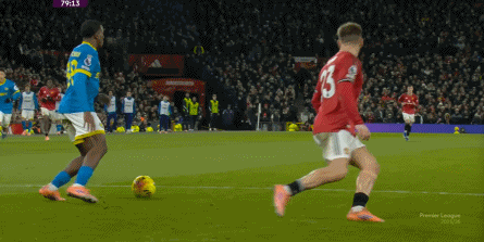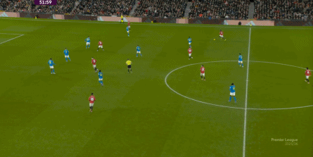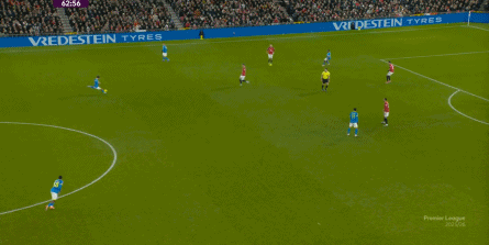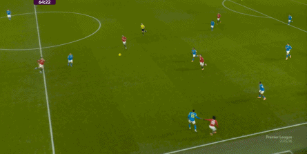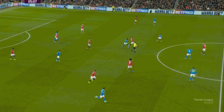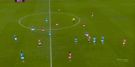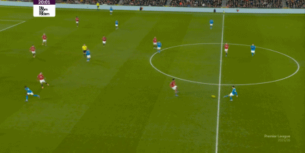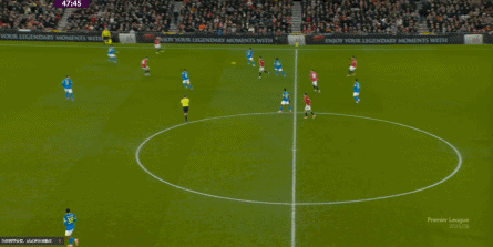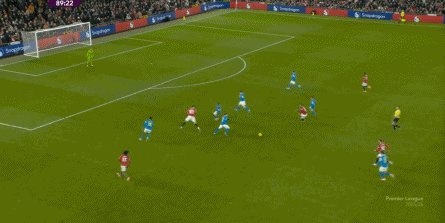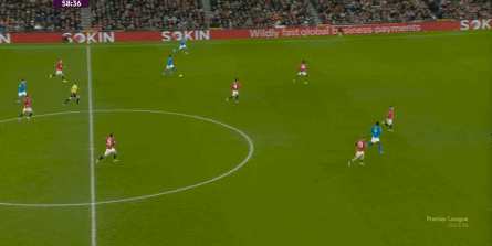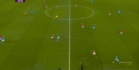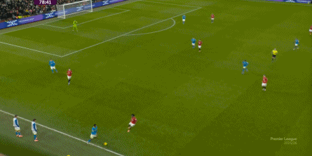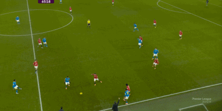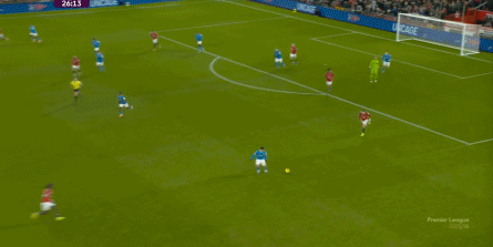 也能通过捕捉曼联的失误,吃掉库尼亚之后,从右路继续送出传中: