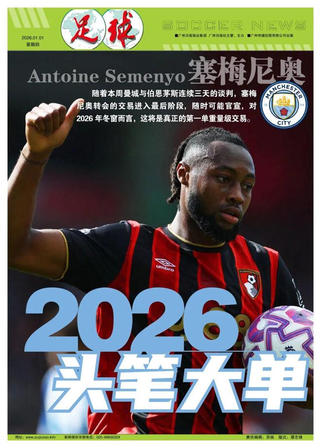 随着本周曼城与伯恩茅斯连续三天的谈判,塞梅尼奥转会的交易进入最后阶段,随时可能官宣,对2026年冬窗而言,这将是真正的第一单重量级交易。